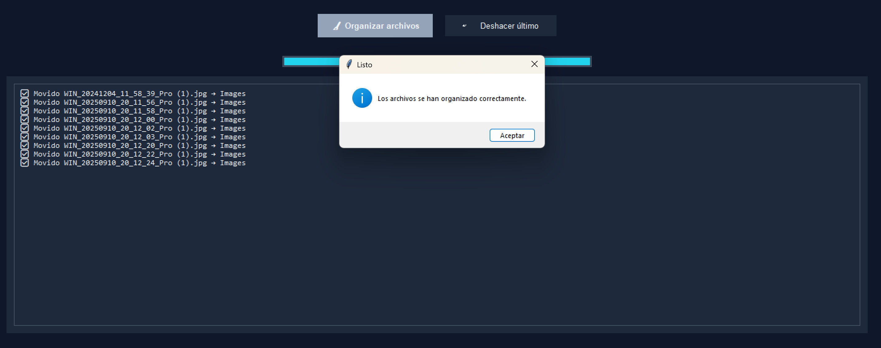 FileFlow automatically sorts files into categories like Documents, Images, Videos, Music and Others.
